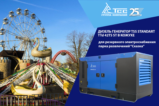 В августе 2019 специалисты центрального офиса ГК ТСС осуществили поставку и комплекс пуско-наладочных работ по запуску в эксплуатацию кожухного дизельного генератора TSS Standart для резервного электропитания аттракционов семейного парка развлечений «Сказка» в Крылатском.