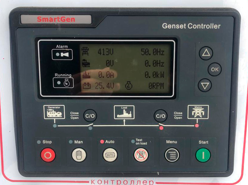 Дизельные электростанции данной серии штатно комплектуются контроллерами Lovato RGK-600 или Smartgen HGM-6120, что позволяет оптимально раскрыть потенциал дизельного двигателя и синхронного генератора. Оба контроллера позволяют контролировать множество параметров работы станции и настроены в заводских условиях для полной готовности к эксплуатации во всех паспортных режимах.