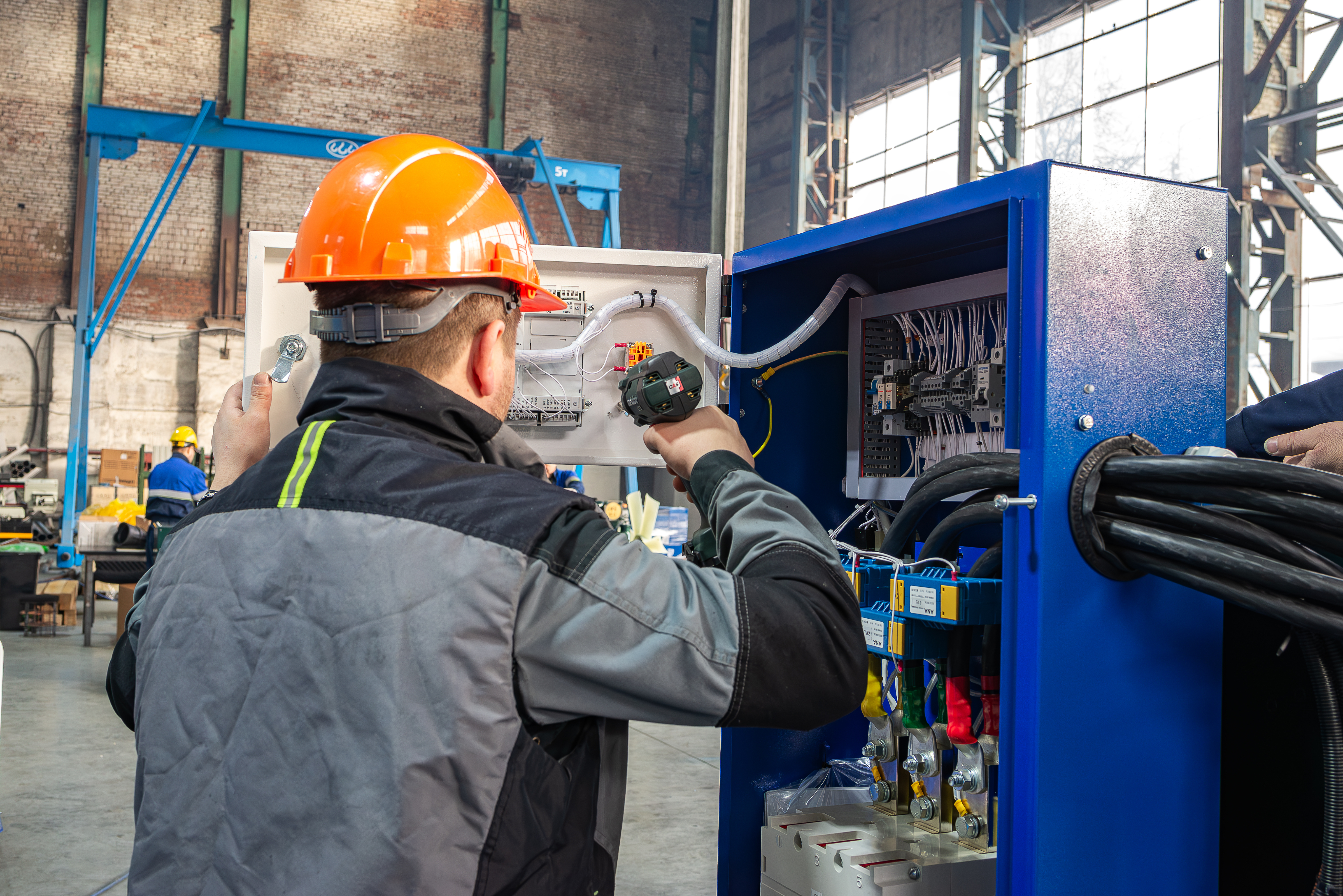 Участок производства шкафов управления электростанцией (ШУЭ) обеспечивает сборку изделий из листов качественного металла и монтаж электротехнических компонентов системы управления, включая силовые кабели, кнопку экстренного останова и другие компоненты.
