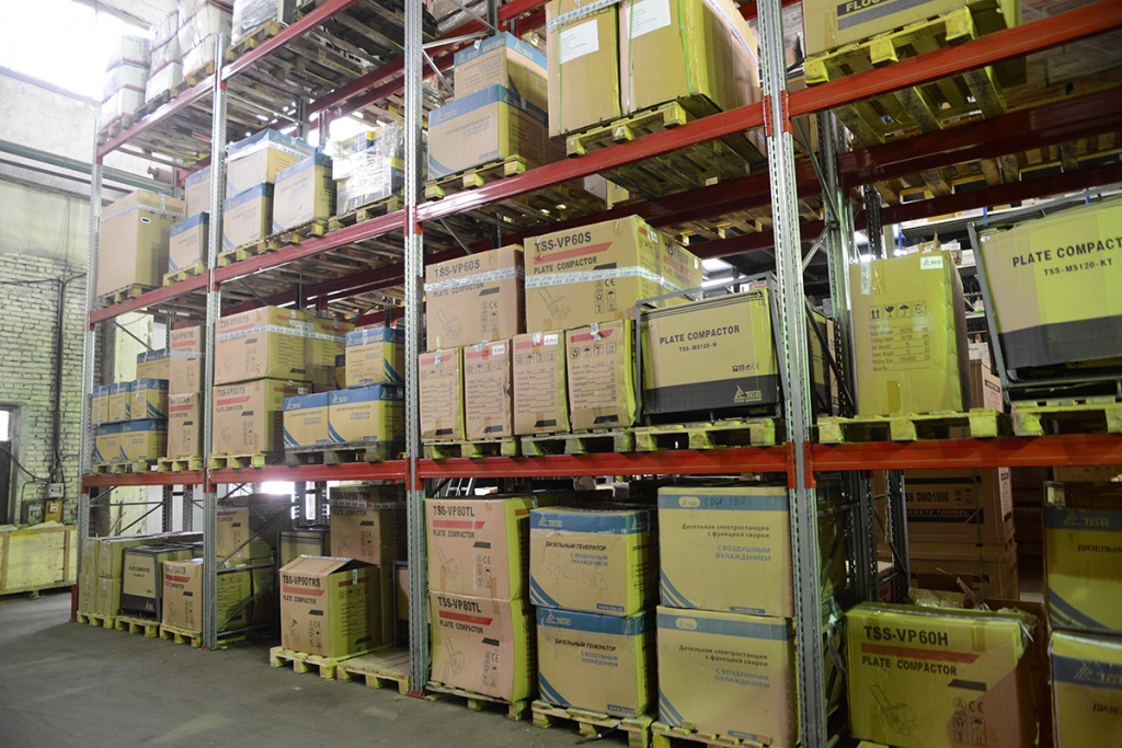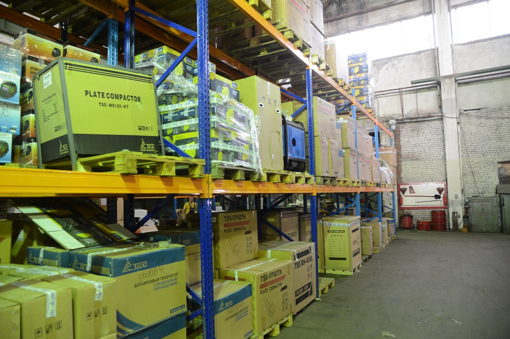 Площадь склада готовой продукции производственного комплекса ТСС в Ивантеевке превышает 2000 квадратных метров, а общий складской комплекс включает в себя склад запчастей, дополнительного оборудования и отдельный склад дизельных генераторных установок. Стоит отметить, что когда идёт речь о гарантированном наличии ассортимента продукции на складах, то имеется в виду не только центральный офис компании в Москве и Подмосковье, но и склады крупного дилера ГК ТСС в Крыму, в городе Симферополе, а также, филиала в Самаре.